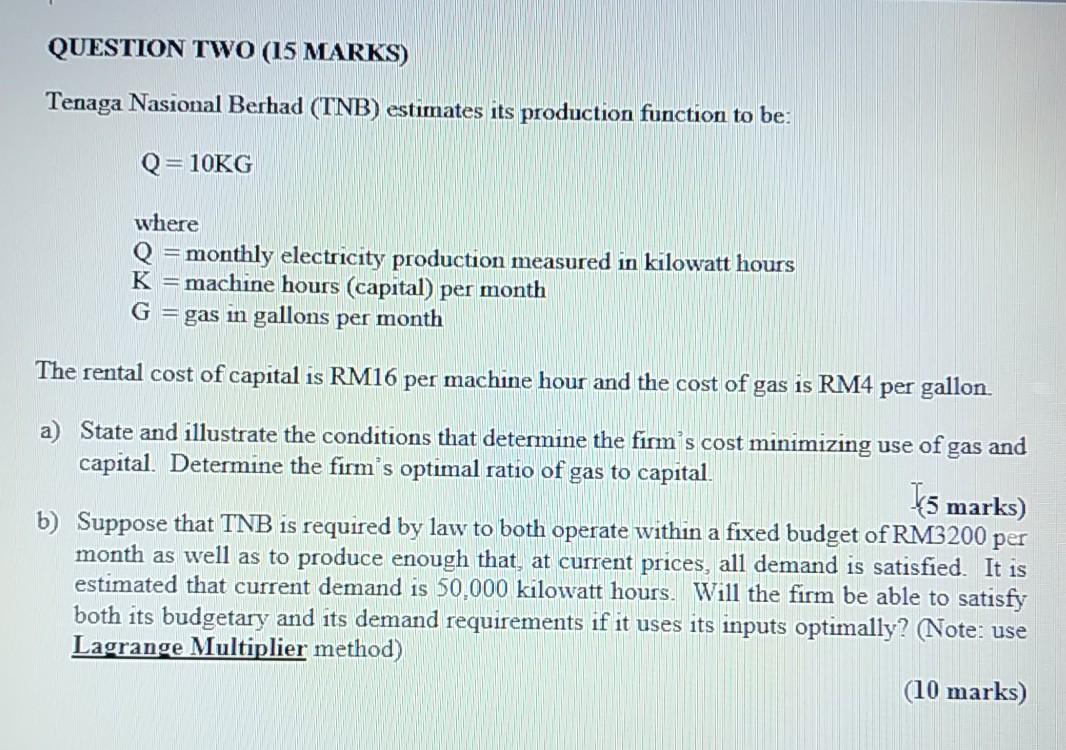 Solved Question Two 15 Marks Tenaga Nasional Berhad Tn Chegg Com