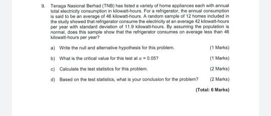 Solved 9 Tenaga Nasional Berhad Tnb Has Listed A Varie Chegg Com